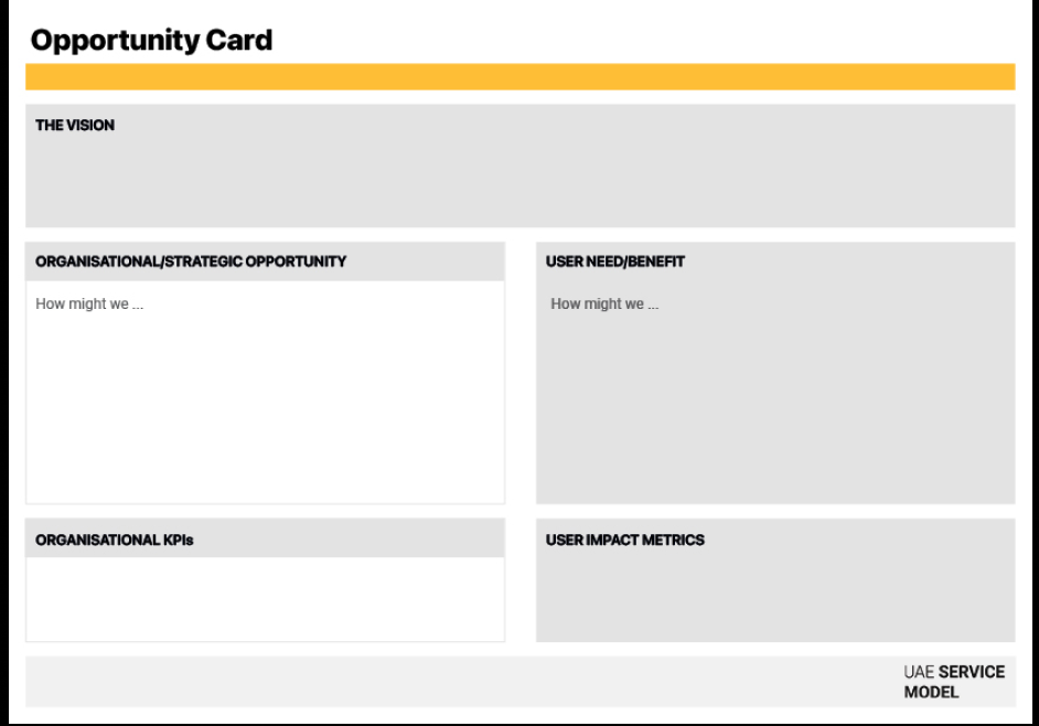 The Service Blueprint is the "architectural drawing" of your service. While a Journey Map tracks what the user feels, the Blueprint maps how the service actually works. It provides a complete, X-ray view of the service by connecting the user’s actions to the internal operations, digital systems, and different government entities required to deliver the outcome. This tool is critical for designing Service Bundles. It allows you to see exactly where data must flow between departments to create a seamless experience, ensuring the service is not just desirable for the user, but operationally feasible and technically robust.